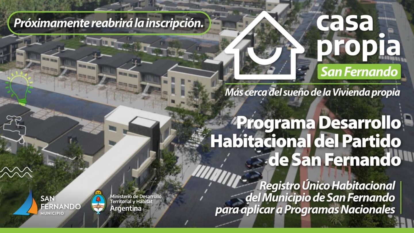 el proceso para la inscripción al REGISTRO ÚNICO HABITACIONAL del Municipio de San Fernando, por el cual deberán completar un FORMULARIO DE INSCRIPCIÓN que próximamente se incluirá en este sitio.