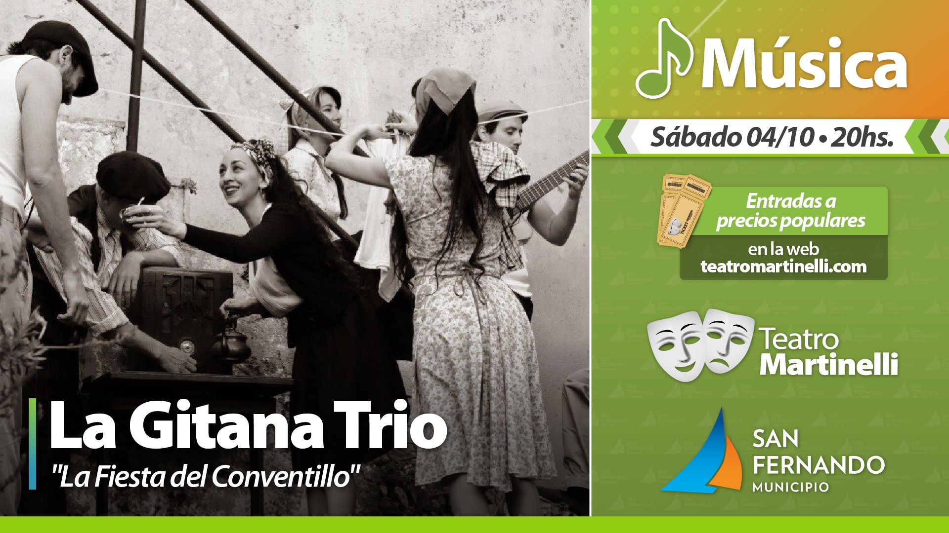 El sábado 4 a las 20h, “La Gitana Trío” lleva al escenario su primer disco “La Fiesta del Conventillo”, acompañado por un Sainete Criollo con 16 artistas. La obra narra la historia de cómo “La Pulpera de Santa Lucía” deja su pueblo para buscar a su amado Tito en un conventillo porteño.