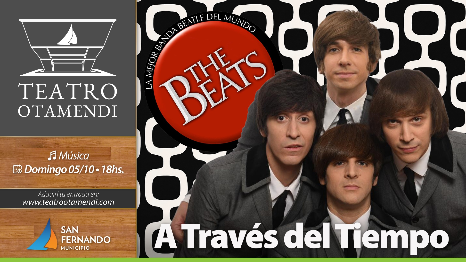 El domingo 05/10 a las 18h se presentará “The Beats”, una banda tributo a “The Beatles” que ofrece una obra musical y teatral recreando la música de uno de los movimientos culturales más relevantes de todos los tiempos.