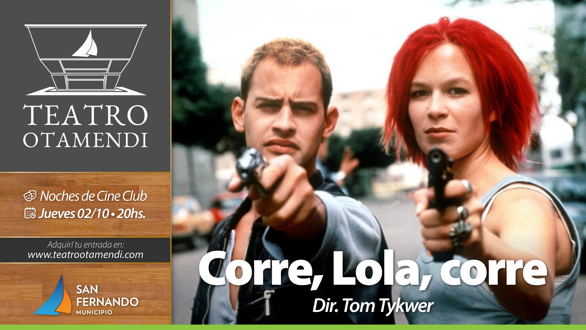 La propuesta comienza el jueves 02/10 a las 20h con la proyección de “Corre, Lola, corre”, película alemana de acción y drama dirigida por Tom Tykwer (1998, 76 min). La historia sigue a Lola, quien tiene solo 20 minutos para conseguir 100 mil marcos y evitar que su novio Manni sea asesinado por un traficante.